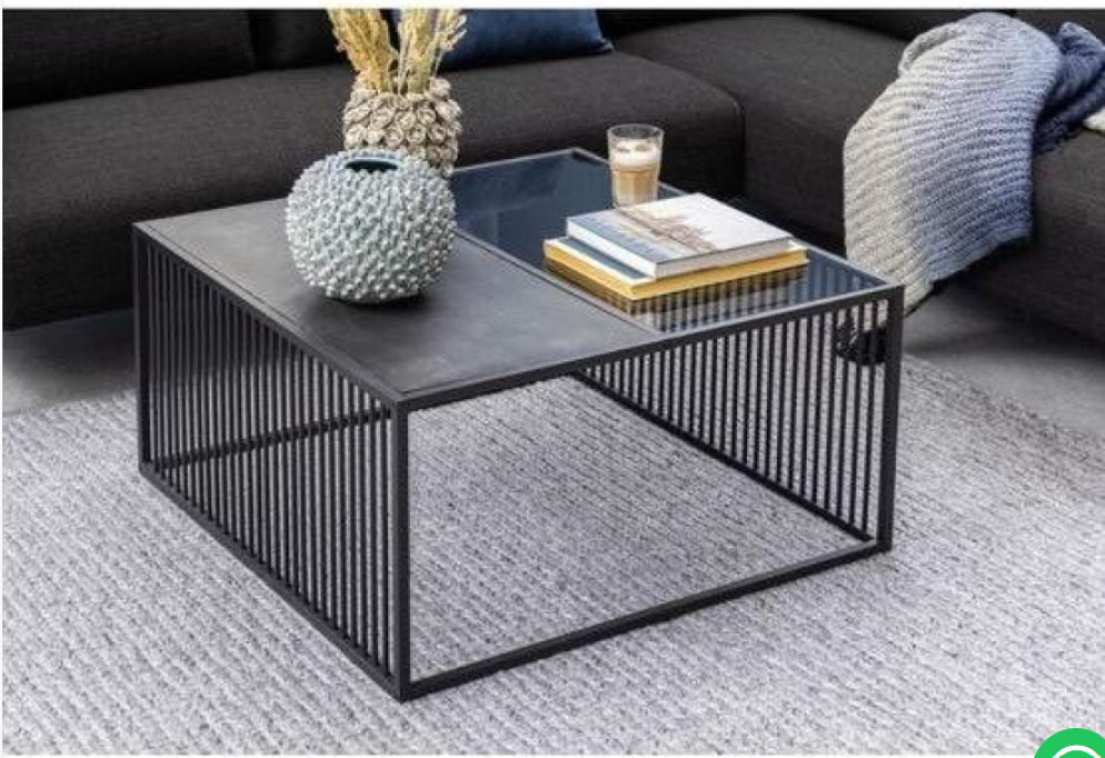 طاوله تقديم حديد سطح خشب اسود مع الزجاج