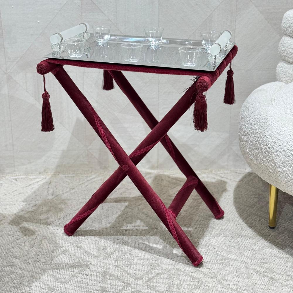 طاوله خدمه قابله للطي مخمل عنابي 59^45^45 سم
